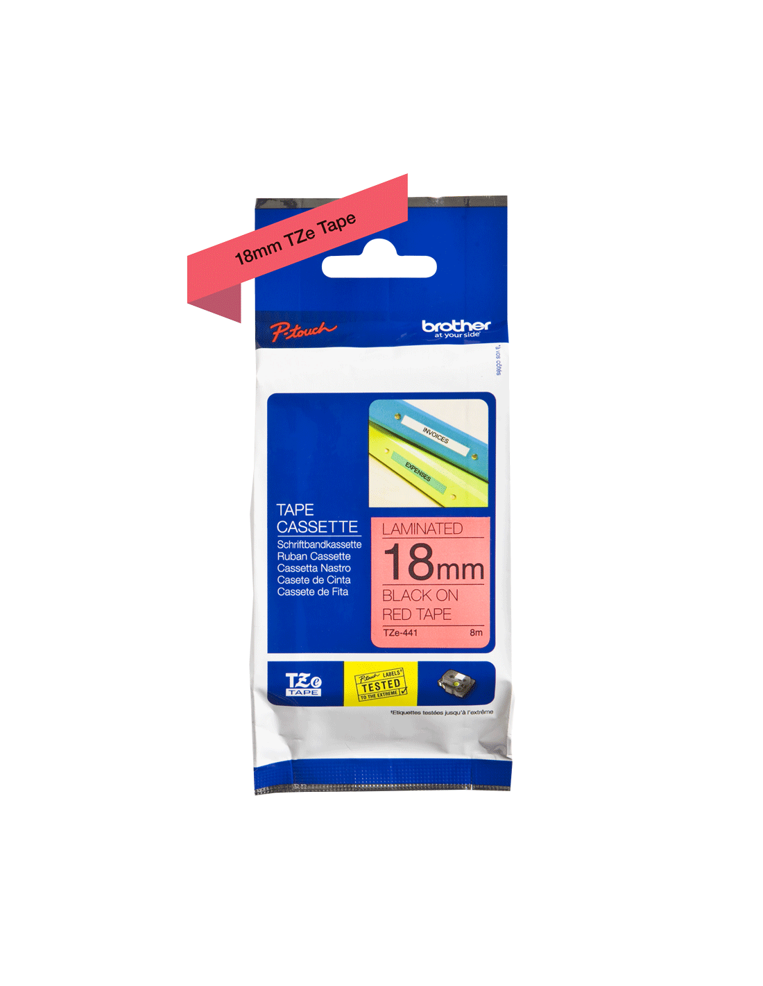 Brother TZE441. Taille de la bande magnétique: 18 mm, Longueur de la bande: 8 m