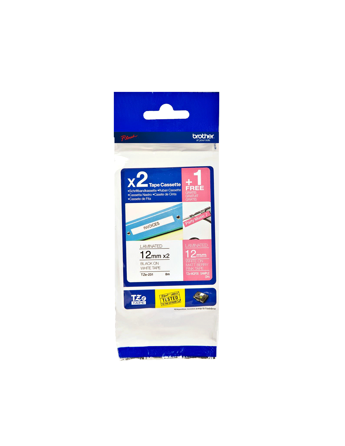 Brother - TZE-32M3 - Etiquettes - pack de 3 Rouleaux (12 mm x 8 m) : 1 rouleau blanc sur rose et 2 rouleaux noir sur blanc