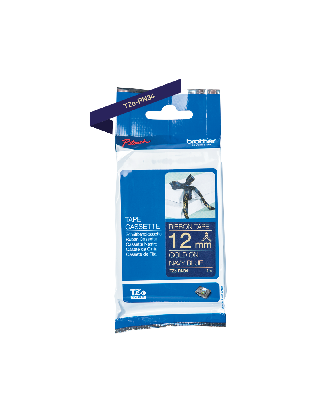 Brother - TZE-RN34 - Etiquettes - Or sur bleu nuit - Rouleau (12 mm x 4 m) - autocollant