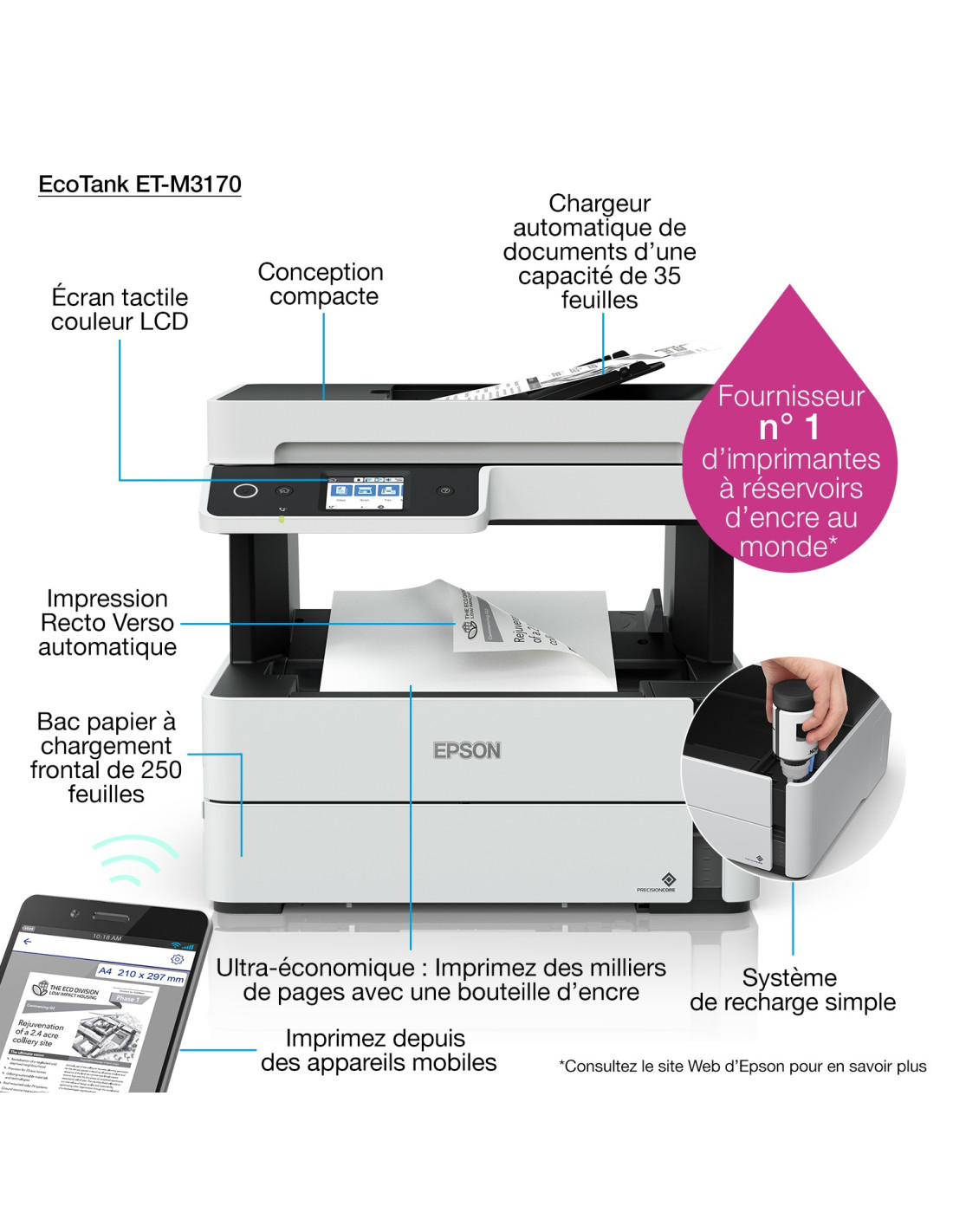 - Les fonctionnalités mobiles facilitent la connexion et l'impression avec n'importe quel appareil