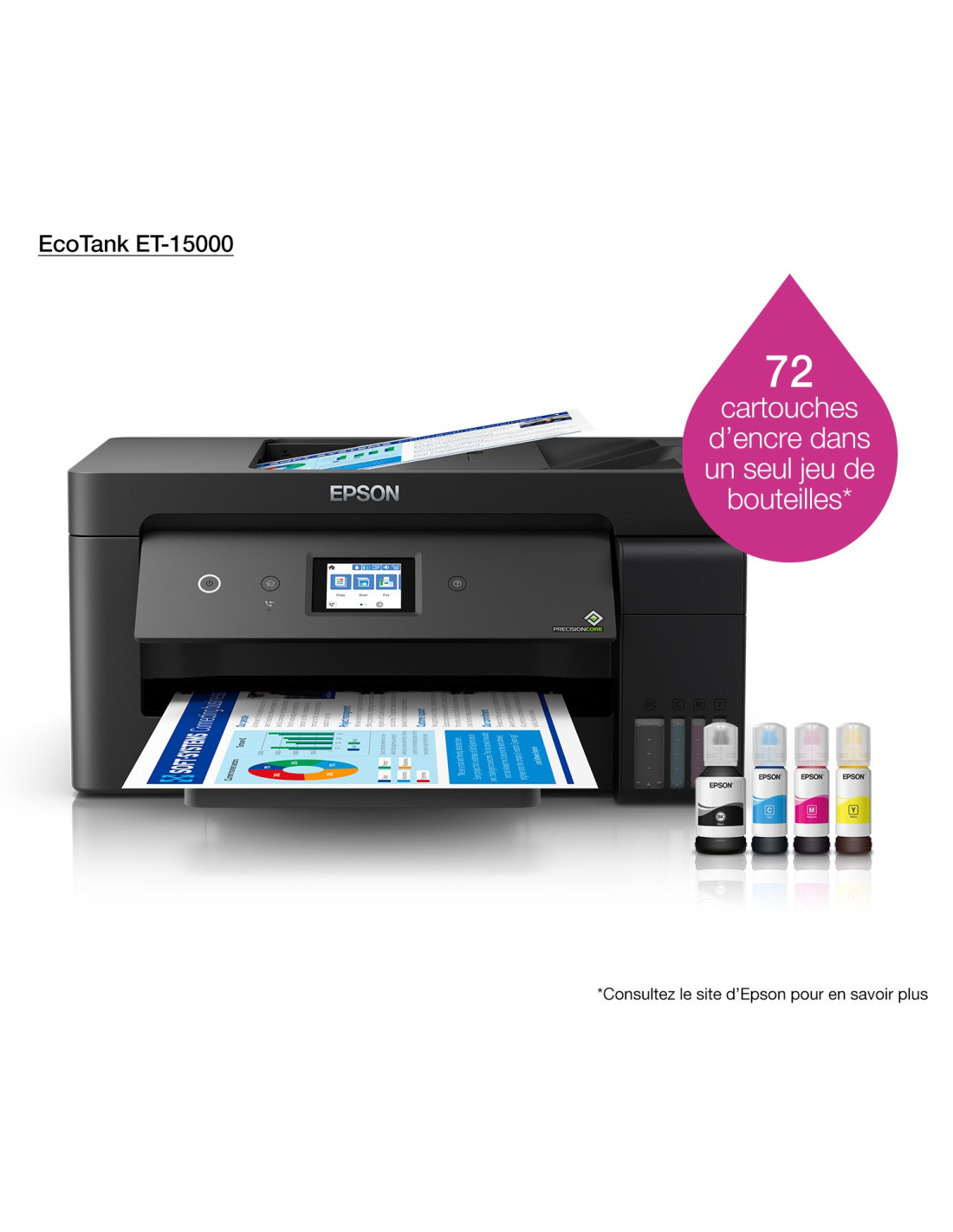 Epson - EcoTank ET-15000 - Multifonctions, impression, copie, scan, fax, couleur, jet d’encre, A4, recto verso en impression, copie, scan, chargeur RADF, 17 ppm